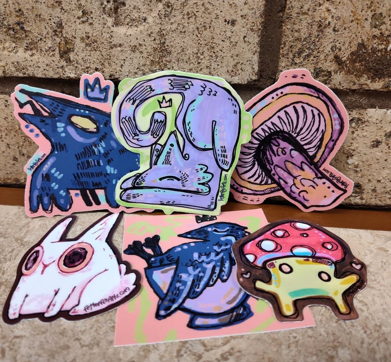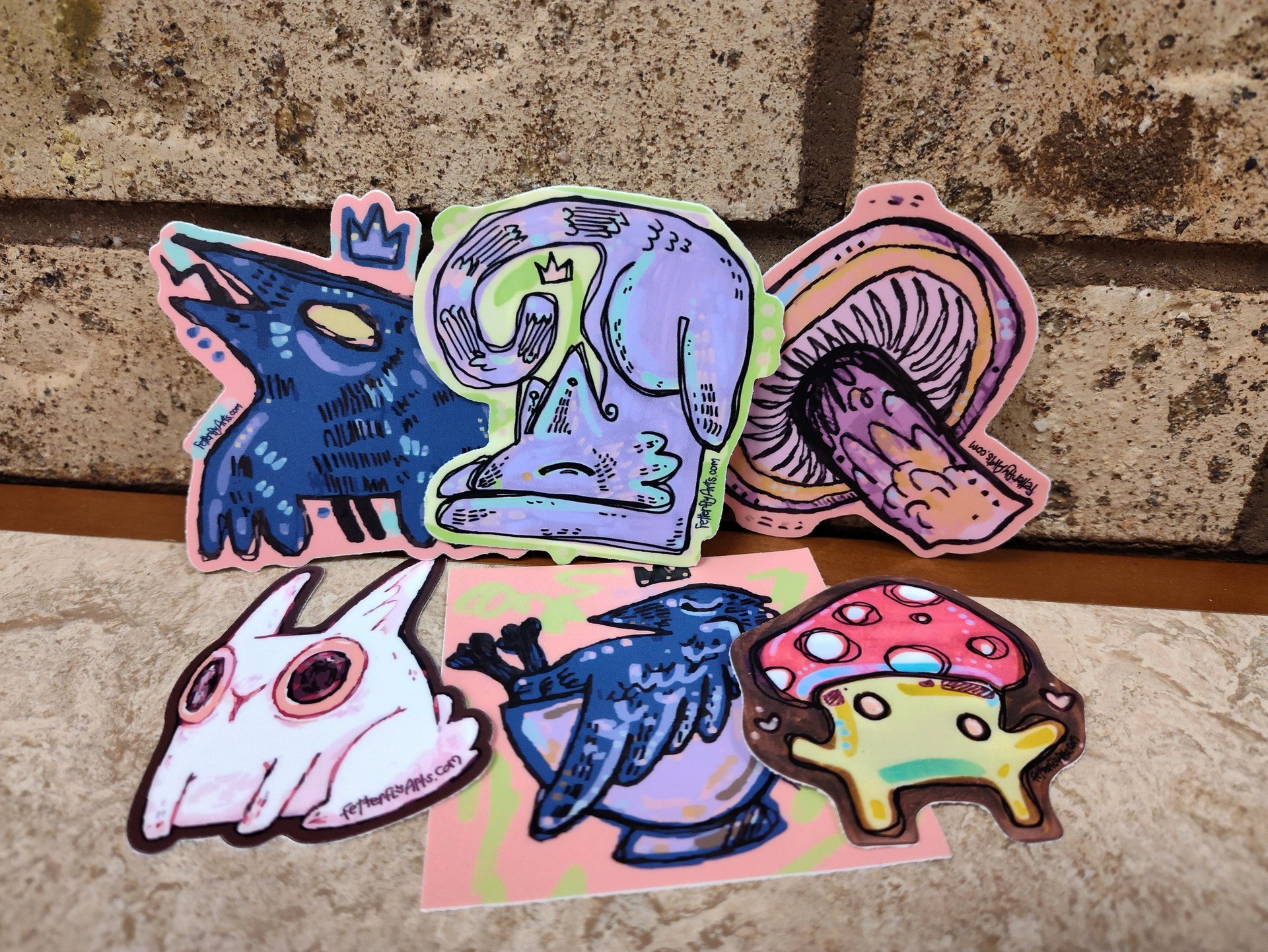 Whether you’re new to art journaling or already knee-deep in glitter glue, here you can explore stickers, downloadable PNG sets, art prints, and gently unhinged inspiration to help your own art-making take flight.